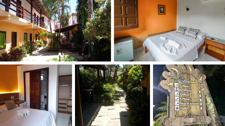 Pousada Tapirandú, na Segunda Praia, com quartos suítes, ar-condicionado, Wi-Fi, varanda térrea e vista para o jardim. Café da manhã buffet incluso e localização excelente, a poucos passos do mar.